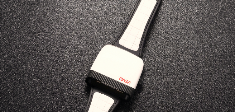 Ремешок из резинированной кожи с квадратным узором напоминает материалы, использовавшиеся в костюмах астронавтов NASA. Это делает модель особенно привлекательной для коллекционеров из СНГ, интересующихся космической тематикой.