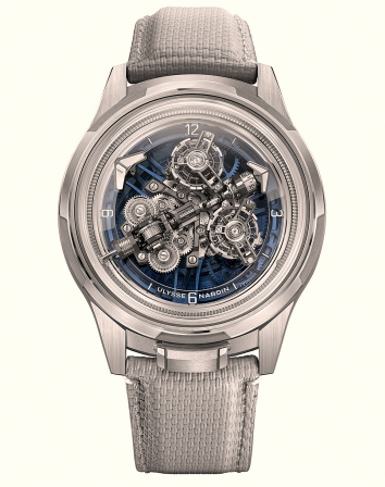 Калибр HMC 500 был модифицирован для ручного завода, а мосты из антрацита частично скелетонированы. Запас хода составляет 74 часа, а механизм работает на частоте 21,600 колебаний в час.
