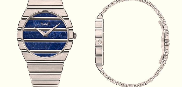 Центральное место в новой коллекции занимает модель Polo 79 из белого золота с содалитовым циферблатом. Часы сохраняют архитектуру предыдущих моделей, но добавление камня делает акцент на уникальности каждого экземпляра. Модель оснащена механизмом Piaget 1200P1, ультратонким автоматическим микророторным калибром толщиной всего 2,35 мм, с запасом хода 44 часа.