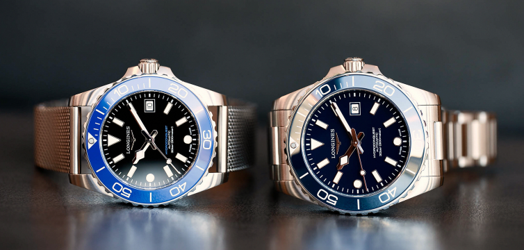 Доступны два размера — 42 мм и 39 мм — и разнообразие цветов. Черные и серые безели сочетаются с лакированными черными циферблатами, а фирменный синий цвет Longines представлен с синим лакированным циферблатом. В палитре также появились новые цвета безелей — зеленый и "светящийся синий". Кроме того, эксклюзивная версия для корпоративных бутиков и онлайн-магазинов представлена с черным безелем и циферблатом "ледяного синего" цвета.