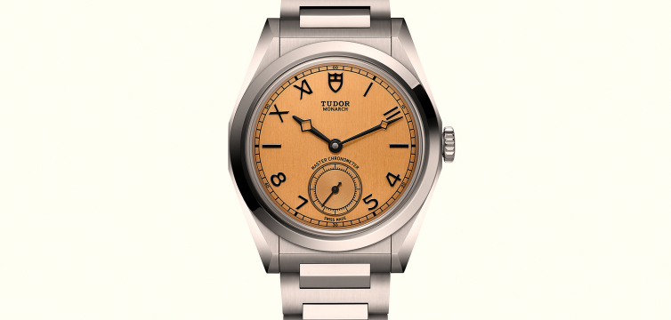 Циферблат шампанского цвета с текстурой, напоминающей папирус, по словам Tudor. Часовые метки представляют собой смесь римских и арабских цифр, часто называемую "Калифорнийским" циферблатом, что облегчает считывание времени. Маленькая секундная стрелка расположена на 6 часах. Часовая и минутная стрелки напоминают фирменные стрелки "снежинка" Tudor.